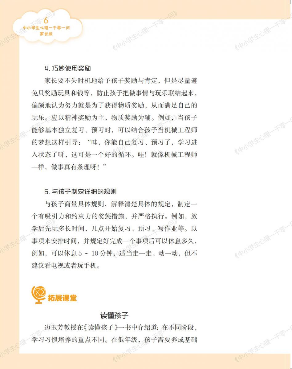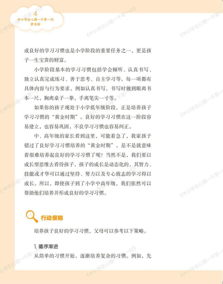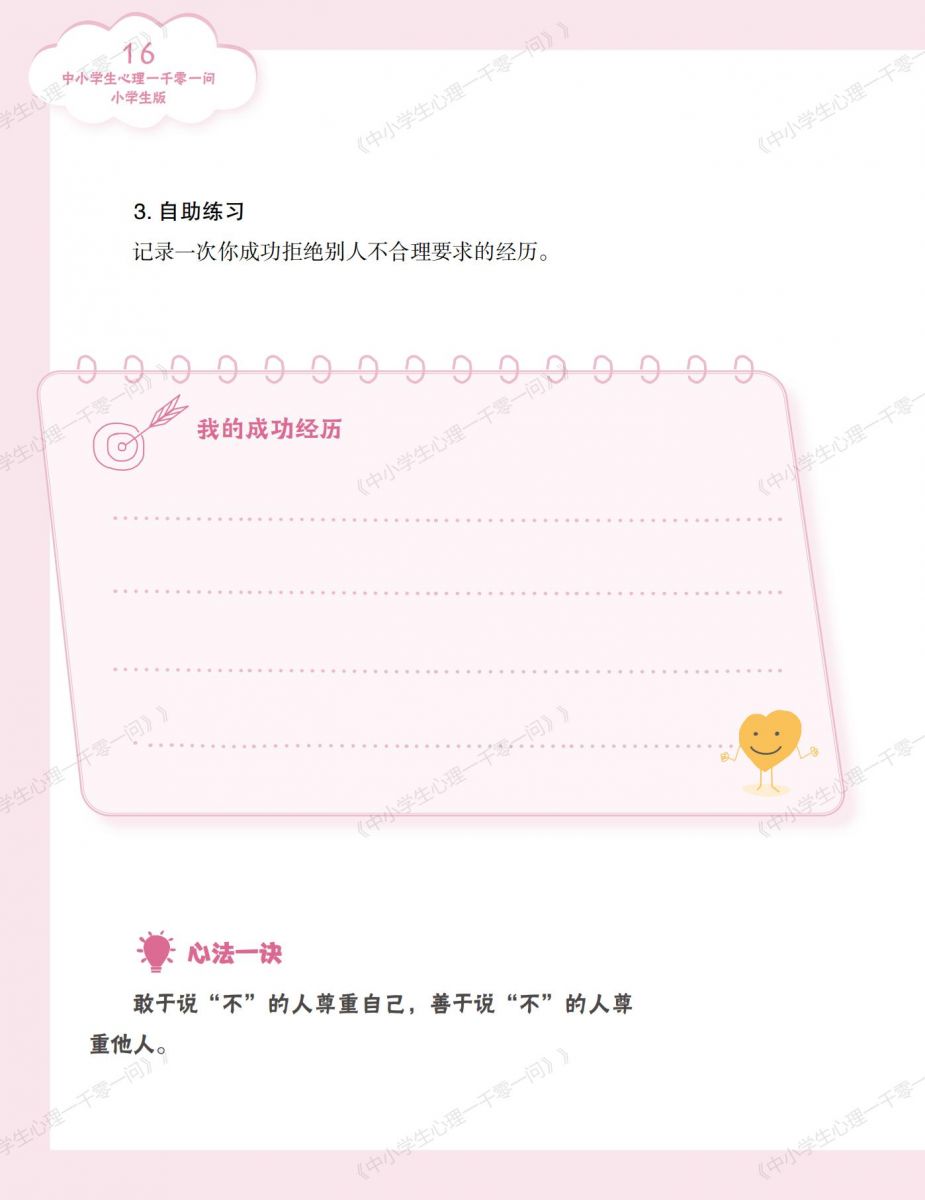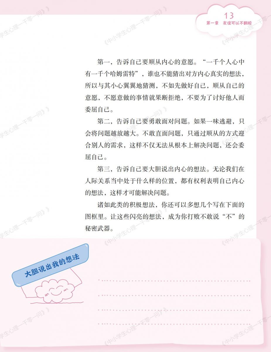 《中小学生心理一千零一问》丛书的内容编排具针对性。各个版本紧密围绕不同受众的需求与特点进行设计,使中小学生能够获取贴合自身成长困惑的解答,教师能获得适切的教学方法,家长能得到家庭心理教育的指导,通识版又能拓宽大众对心理问题的认知。