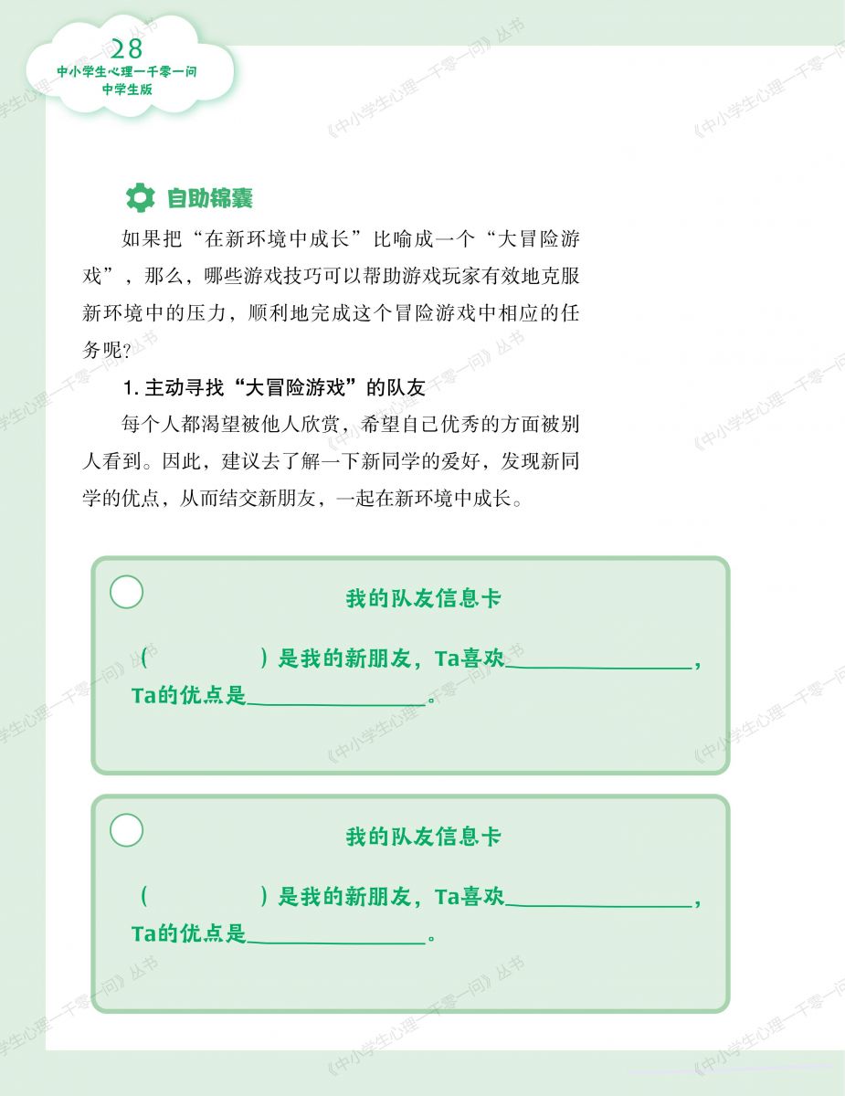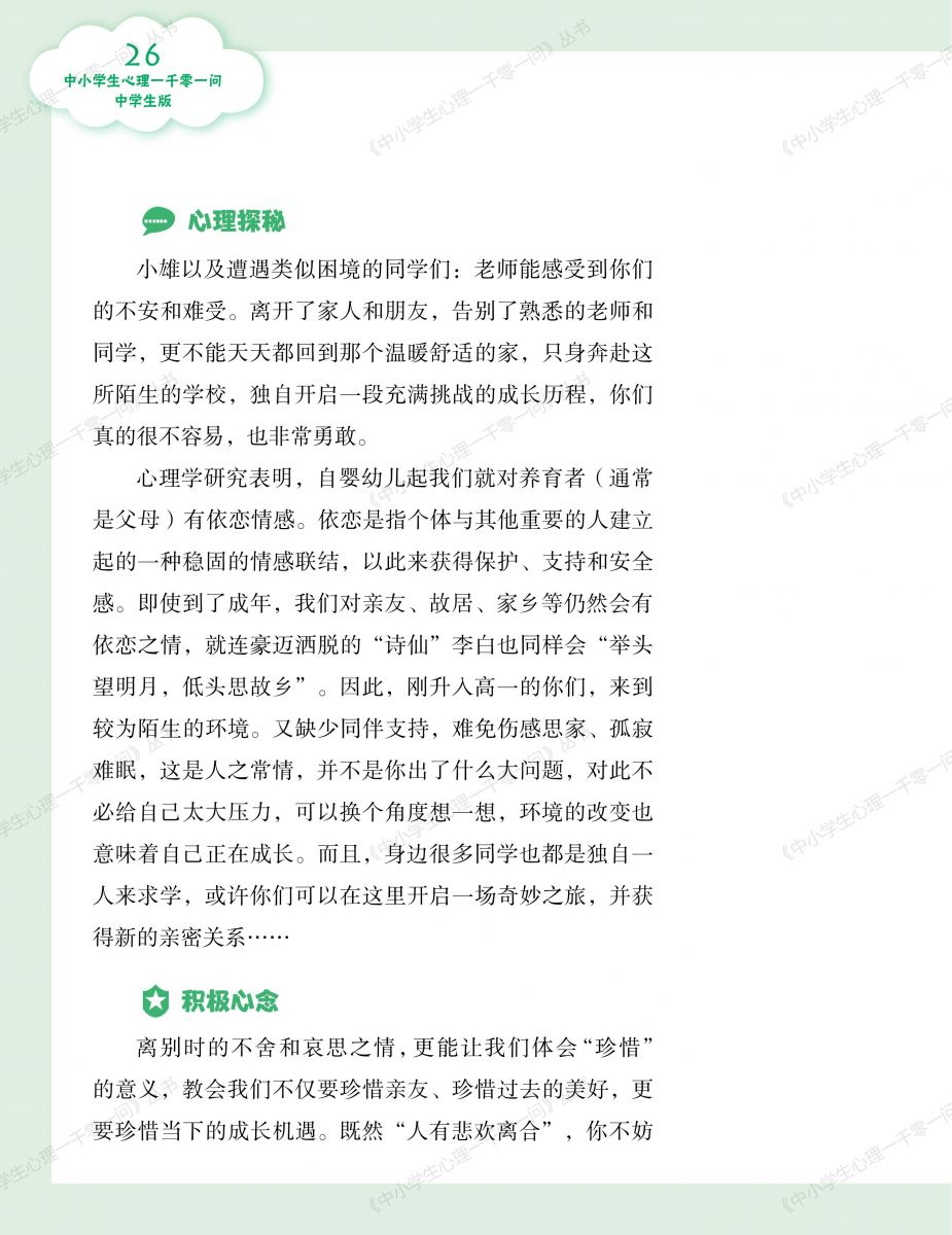《中小学生心理一千零一问》丛书无疑是助力中小学生心理健康教育的新探索与积极尝试。这种自助式科普读物在普及心理健康知识、引导中小学生树立心理健康观念方面,展现出了一种优化且高效的路径。