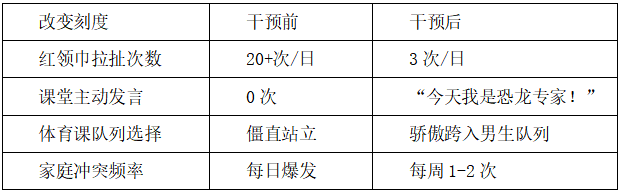 2.中期目标(5-12周):识别行为动机,引导恰当表达(如举手发言);通过沙盘疗法释放压抑情绪,改善家庭互动;
