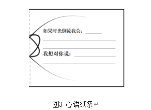 小玲姐姐:亲爱的小伙伴们,本节课到此就快接近尾声了,在下播前,我给大家布置了个小任务,请同学们思考“如果时光倒流,重回你所写下的冲突现场,结合冲突模型,此刻你会用怎样更成熟的方式来解决呢?”“冲突过程中产生的伤害,你又想对TA说些什么来修复裂痕呢?”可用句型“如果时光倒流我会 ,我想对你说 ”表达(如图3),你可以沿虚线撕开“冲突结”,把你的“心语纸条”传递给那个TA吧~