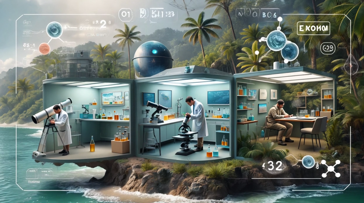 | 霍兰德岛屿视频介绍 | 生成一个科幻实验室风格的岛屿视频,背景是天文台、化学实验室和热带雨林研究站。人物穿着白大褂或野外考察服,正在用显微镜观察细胞、调试望远镜或记录数据。 | ![]() |