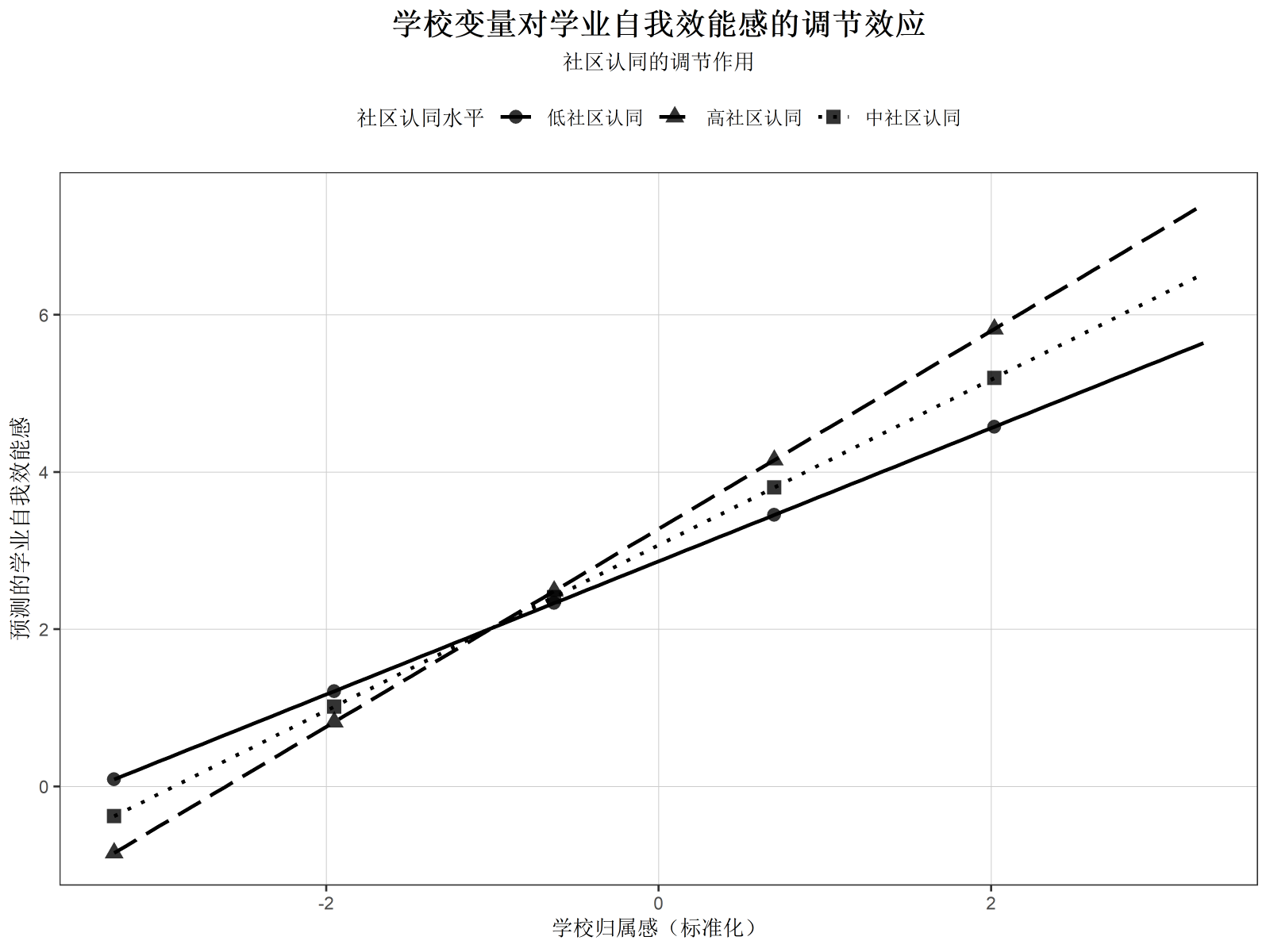 值得注意的是,社区认同感在控制其他变量后并未显示出显著的直接效应,这一发现符合生态系统理论的基本假设,即外层系统通常不直接作用于个体,而是通过调节近端系统的影响来实现其作用[8]。
