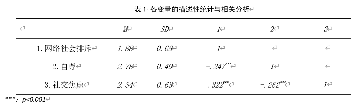 关键词:青少年 网络排斥 社交焦虑 自尊