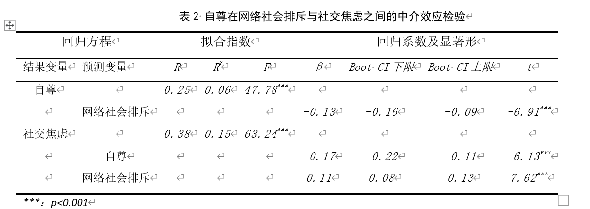 网络社会排斥对青少年社交焦虑的影响:自尊的中介作用