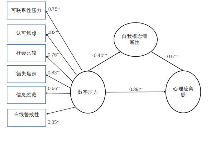 | 数字压力 | 心理疏离感 | 自我概念清晰性 | |