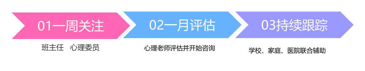 第一步,心理老师建议班主任观察学生返校第一周的表现,在遵照学校考勤制度、遵守班级上课纪律、作业完成情况等方面关注学生。同时,要求班级心理委员了解复学同学的情绪状态和人际关系,如有特殊情况,马上向班主任或心理老师汇报。这一步,不是要求复学学生马上进入状态,而是了解学生返校后的适应情况。第二步,持续一个月的关注后,心理老师评估学生状态,并开始正式咨询。根据多年观察,如果学生能坚持一个月正常上学且较少请假,每周控制在1-2次内,那么ta就基本稳定下来了。如果这一个月经常请假,时常不来,ta就有可能长期请假。第三步,学校联合家庭、医院共同为学生服务。根据现有信息,学校心理辅导中心制定“一生一策”帮扶方案并严格实施。心理老师需持续跟踪了解学生治疗情况,与家长不断沟通确保学生能得到系统科学的治疗。通常,复学学生在这阶段会出现病情反复,心理老师要与学生保持咨询关系,并为家长提供沟通技巧和情绪调节方法。
