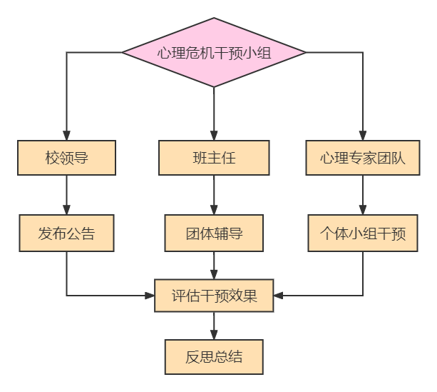 第四步,评估效果与跟踪反馈。心理危机干预小组根据各组心理干预的反馈结果,全面评估心理危机干预效果,并对仍需支持的学生提供长期跟踪服务。
